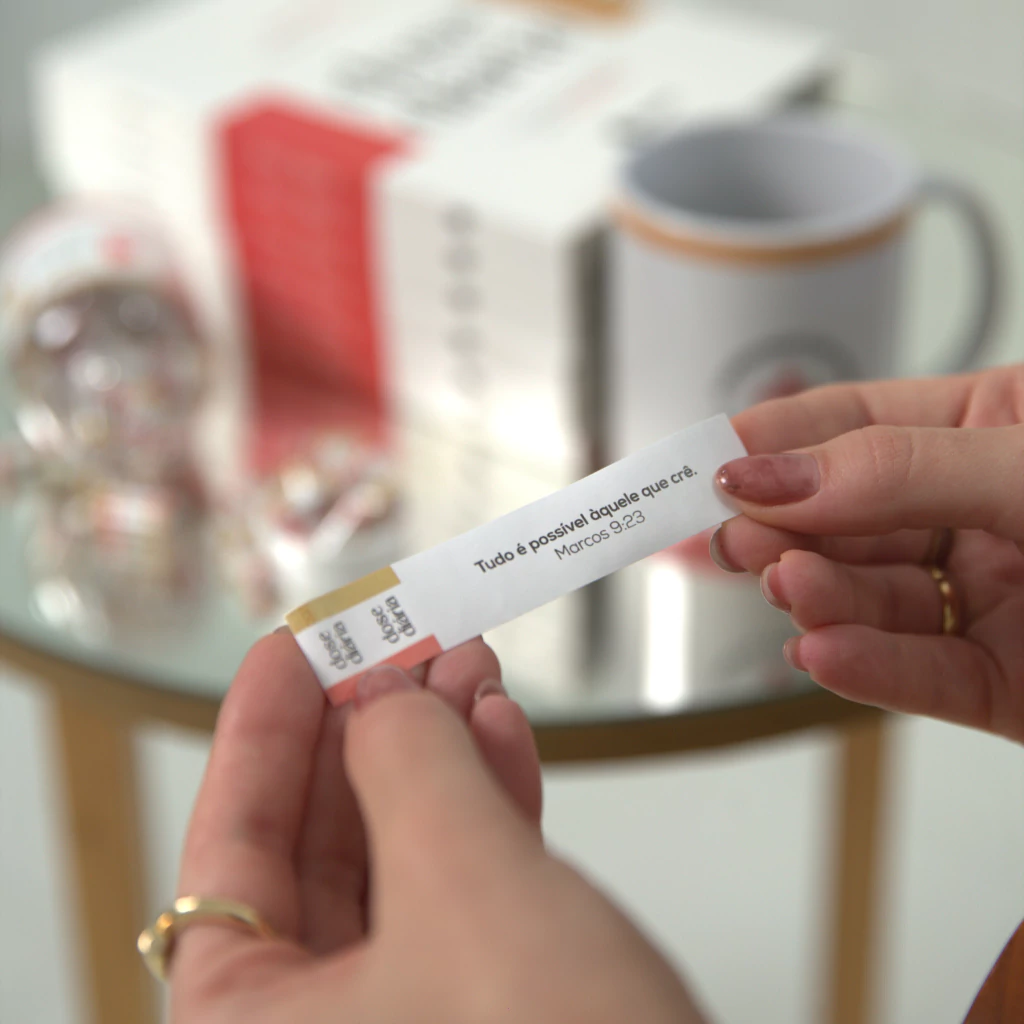 Perfeito para levar consigo no trabalho, na escola ou em viagens, essas cápsulas permitem que você acesse facilmente passagens edificantes e reconfortantes a qualquer momento. Seja para refletir em momentos de tranquilidade ou fortalecer em momentos difíceis, ou até mesmo compartilhar com amigos e familiares, este produto é uma lembrança tangível da presença constante de Deus em sua vida.